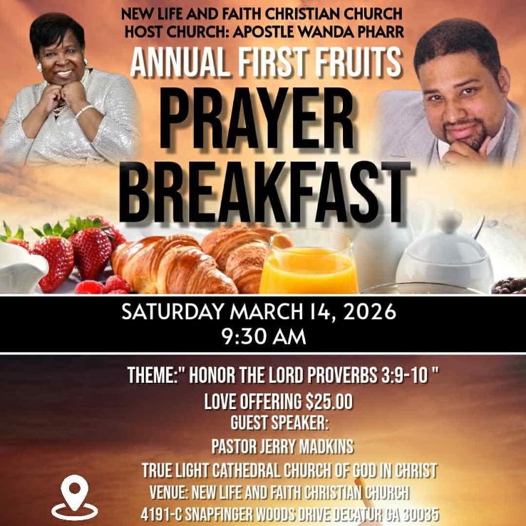 ~ Apostle Wanda Pharr's upcoming events ~ Annual First Fruits Prayer Breakfast March 14, 2026